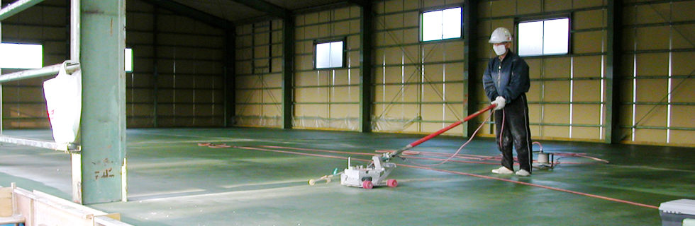 床も問題でした、過去に中二階が設置されたようですが、支柱の基礎も抜き取られたまま返還された為、コンクリート床が大きく波打っていました。幸い新たなテナント様は高床式をお望みでしたので、既存床の上に更に土間スラブを設け、丈夫な高床に造り替えました。