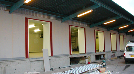 この改装工事では、建物本体の整備はオーナー様、冷蔵・冷凍の為の内装・断熱工事を始め、冷蔵・冷凍倉庫としての必要工事はテナント様にご負担を頂きました。