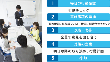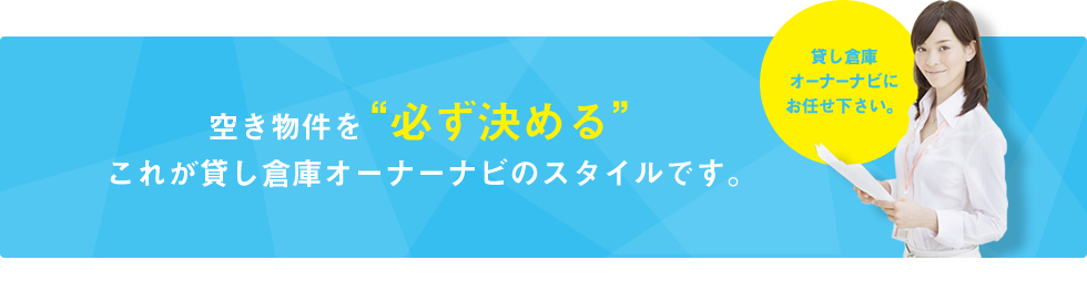倉庫・工場に特化している当社では、問題点を分析検証し、毎日のミーティング等で、具体的に行動に落し込む仕組みを構築しており、どんな営業マンでも、毎月コンスタントに成果を出し、オーナー様に結果で応えています。
